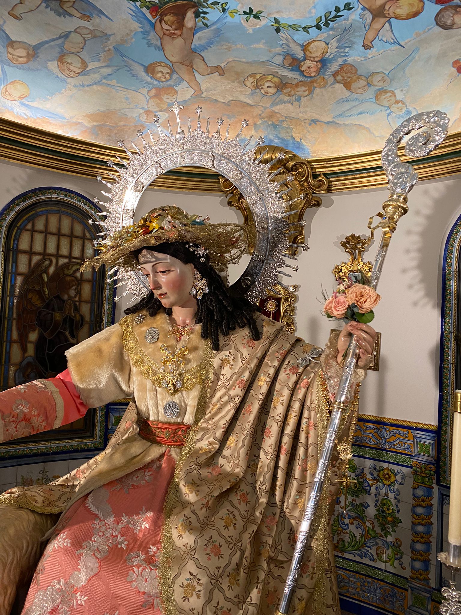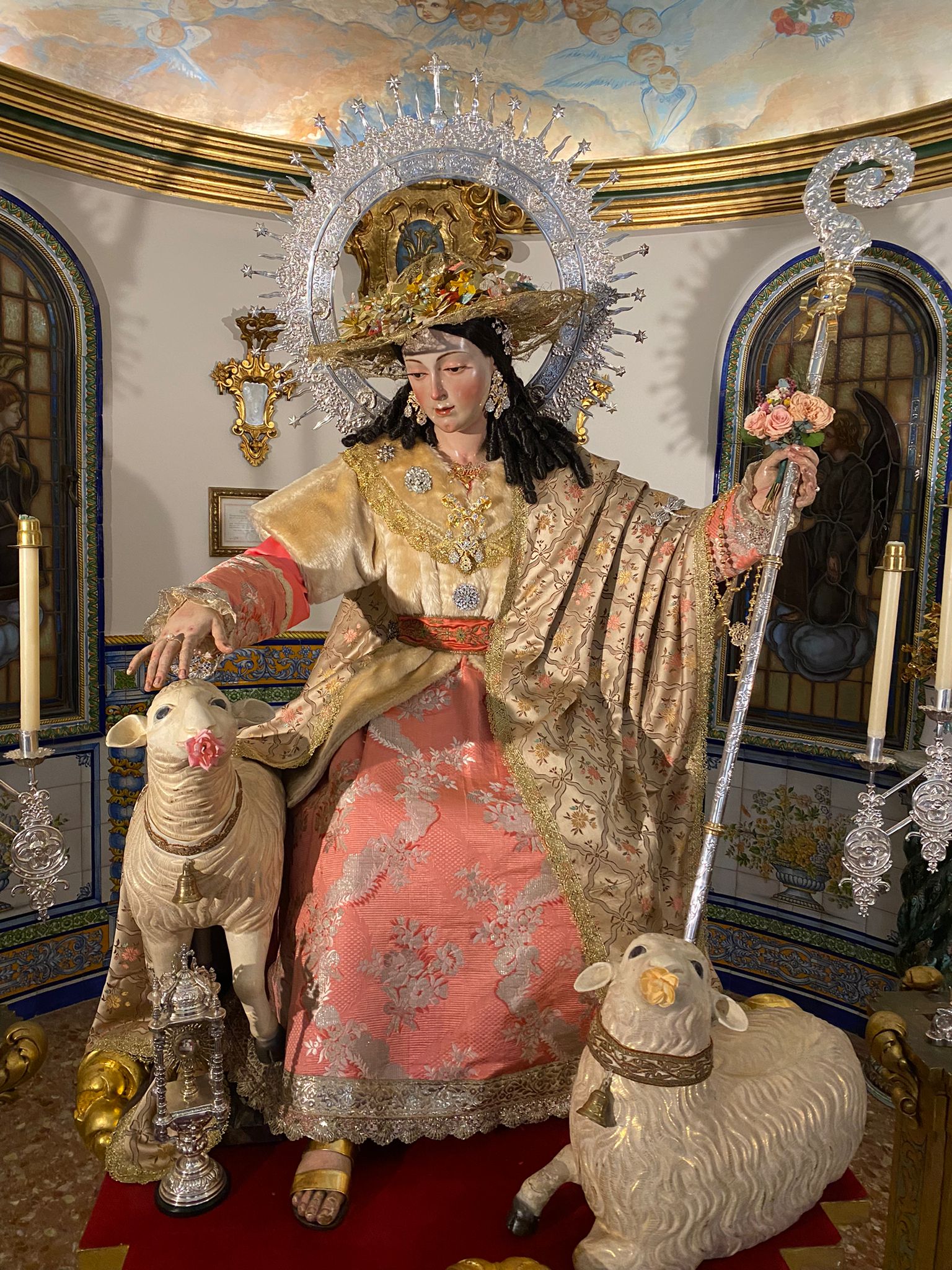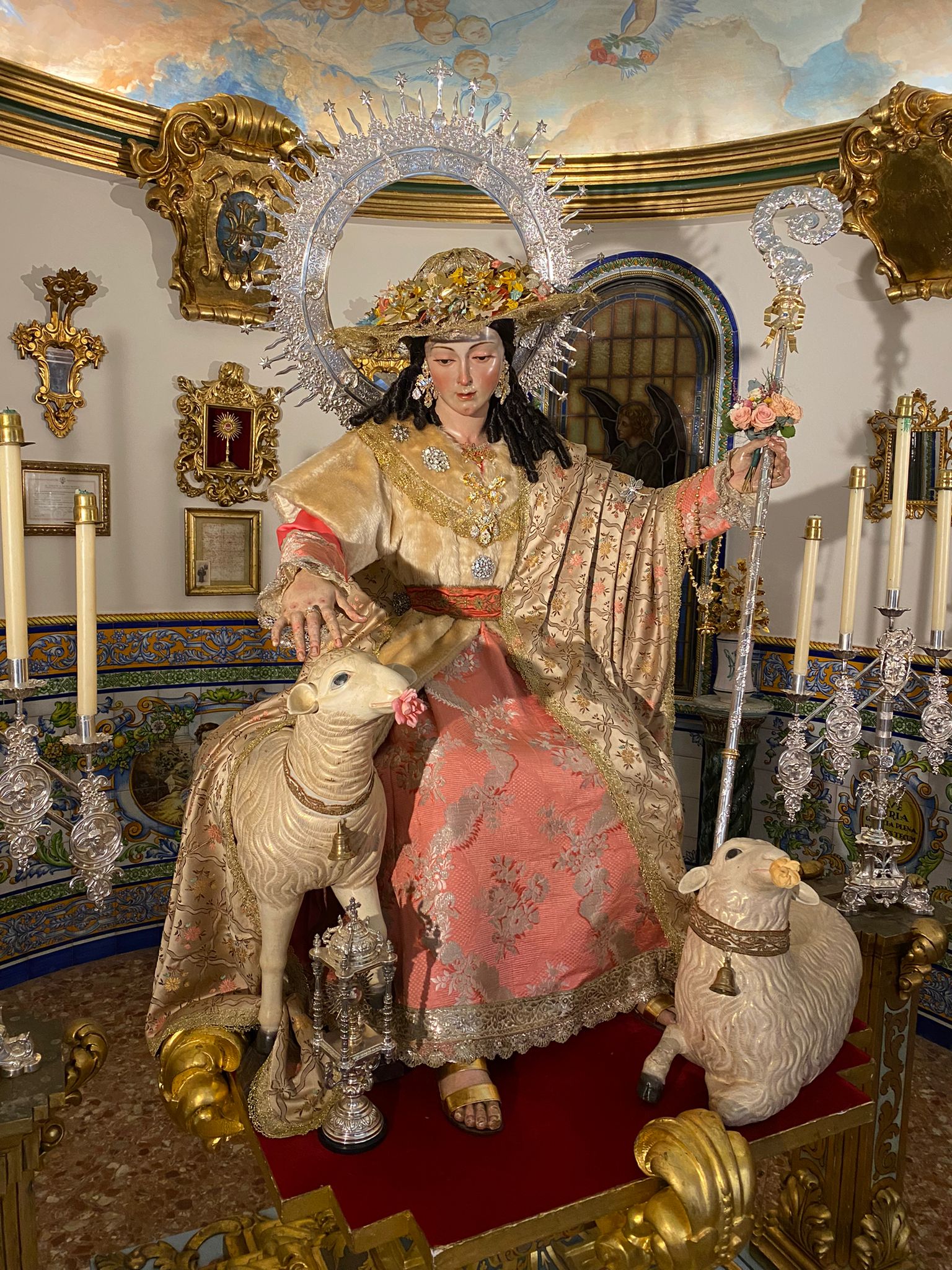 Así luce ataviada la Divina Pastora para el Mes del Rosario