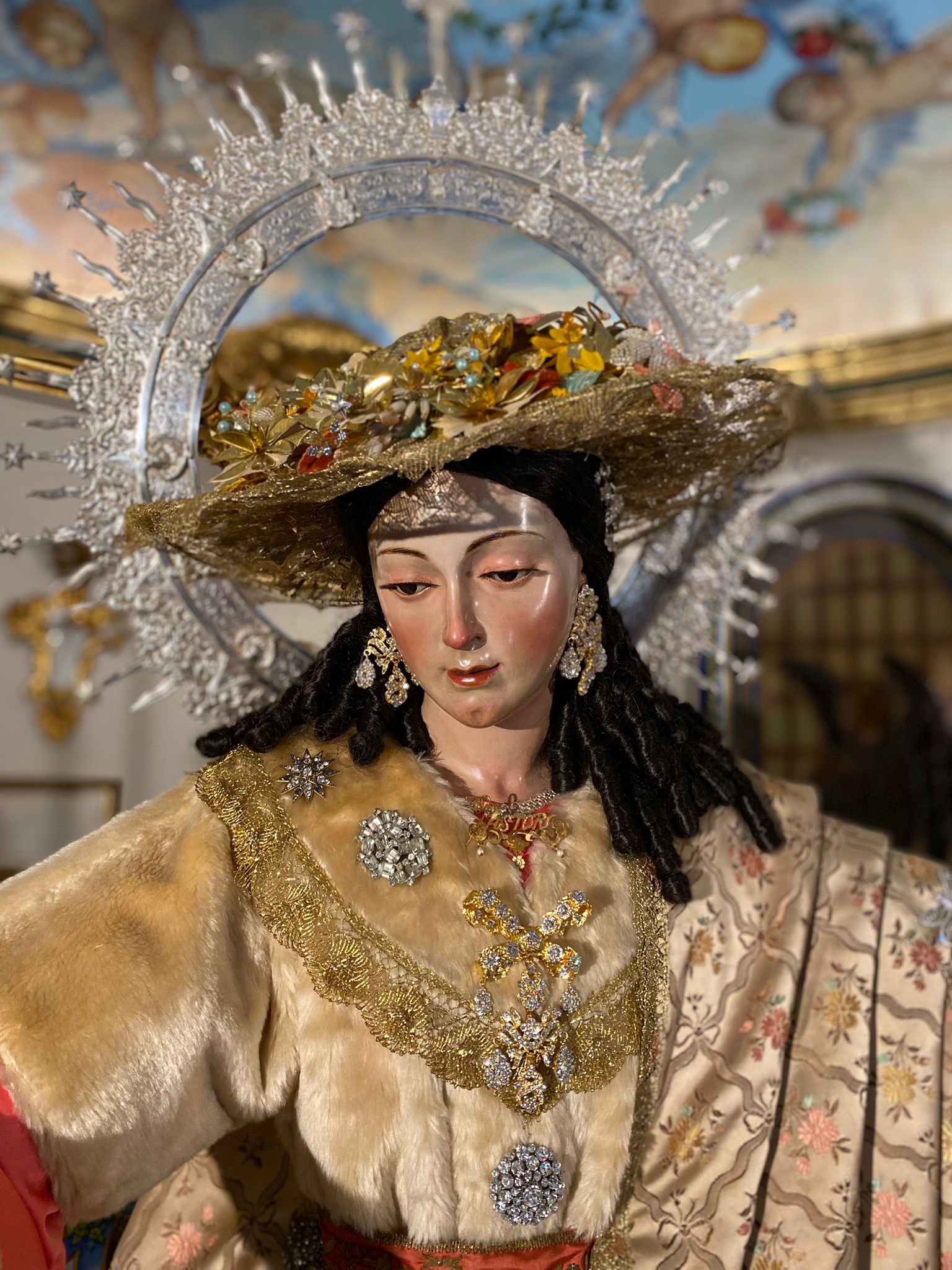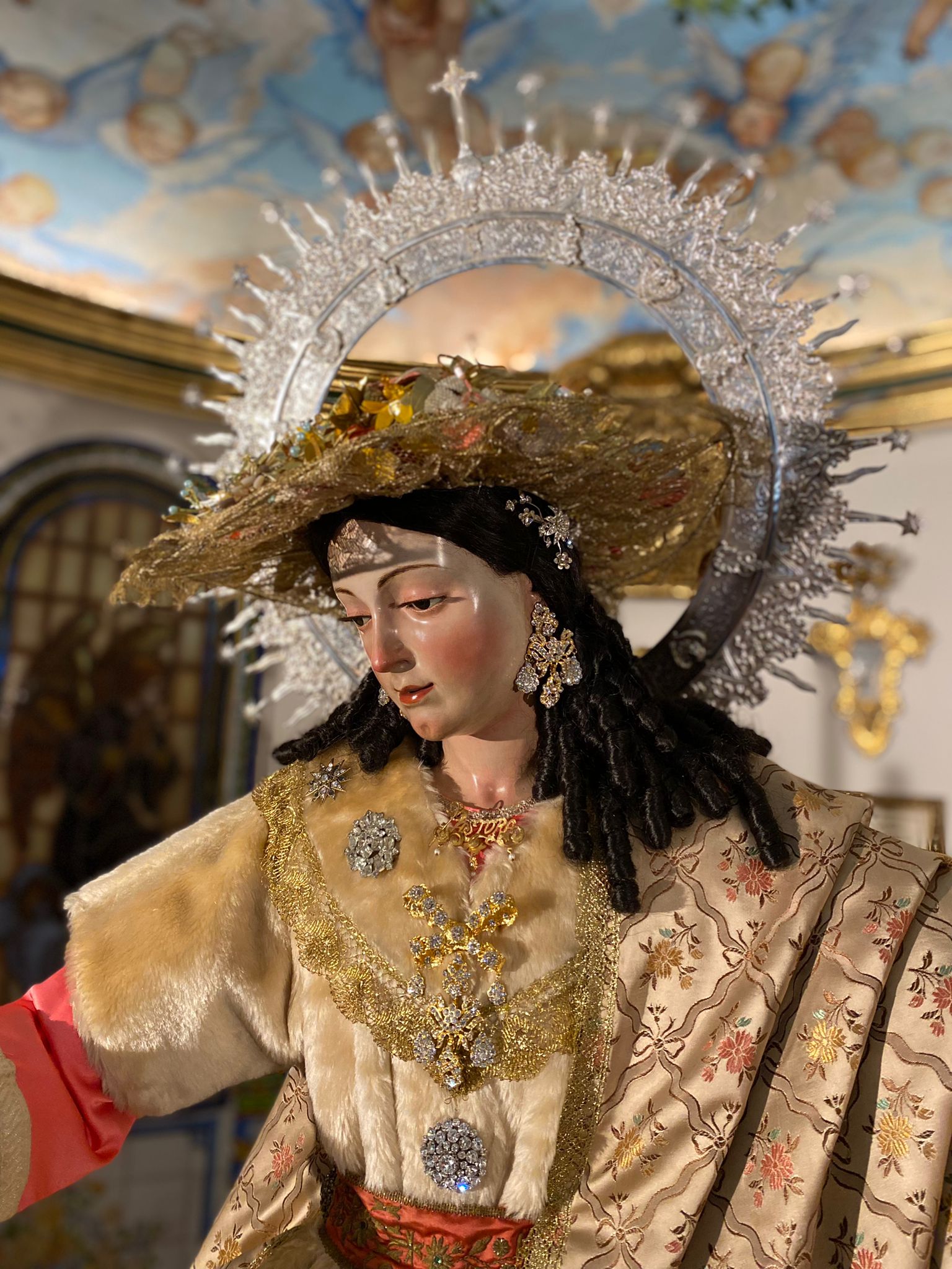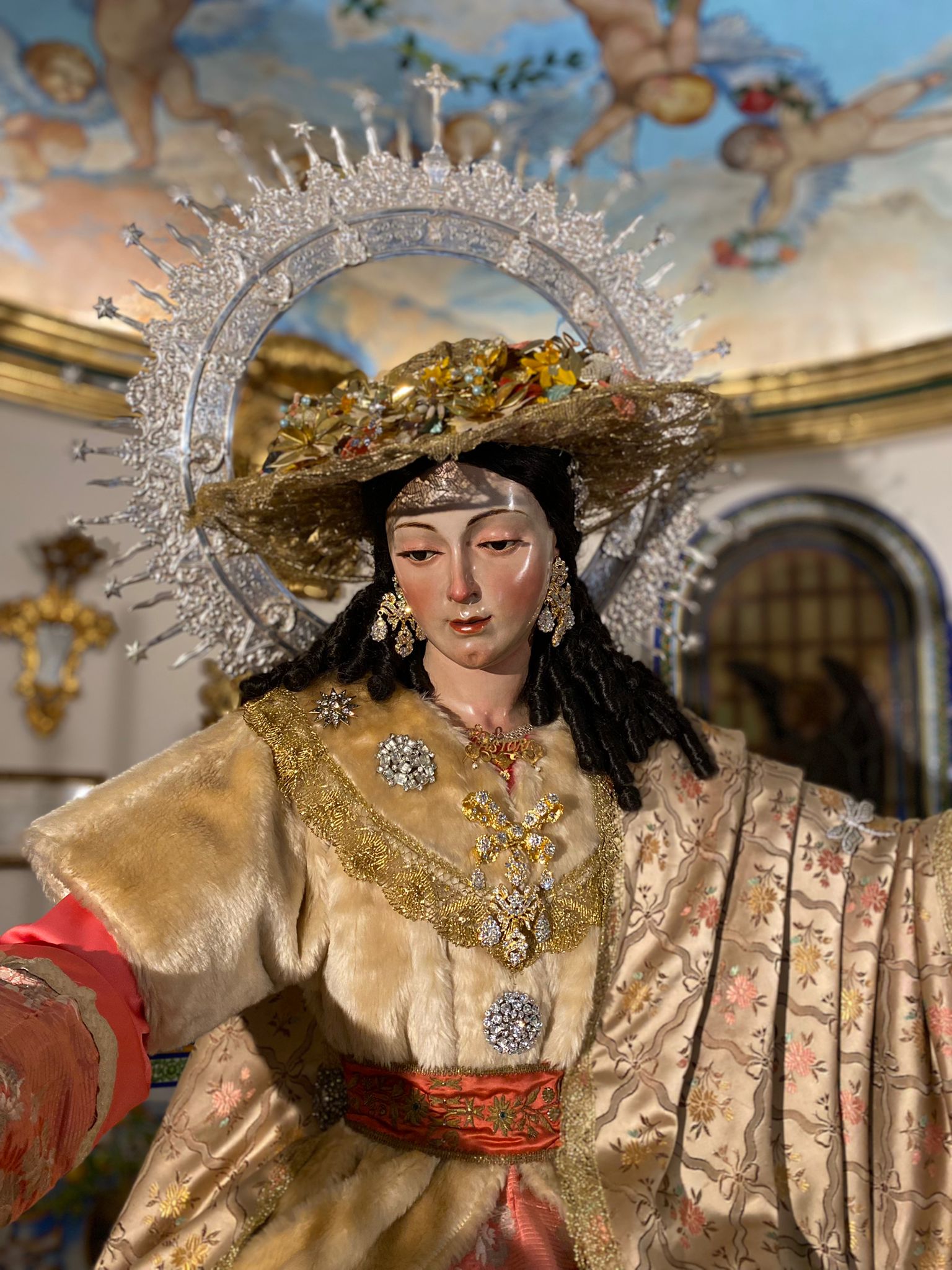 Así luce ataviada la Divina Pastora para el Mes del Rosario